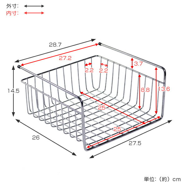 サイズ約 幅29×奥行26.5×高さ14(cm)内容量1台材質鉄(クロムめっき)生産国中国製備考耐荷重:約2kg取り付け部サイズ:奥行25cm、高さ3.2cm商品区分キッチン収納用品カテゴリから探す●シンプルで機能的なフォルムはキッチンで大活躍です。